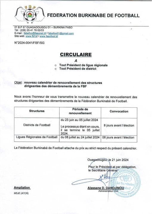 Facebook Twitter Linkedin Whatsapp Imprimer Image Ceci est le nouveau calendrier de renouvellement des structures dirigeantes de Foot ball. Log in to post comments