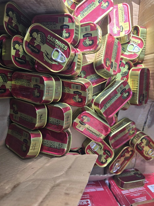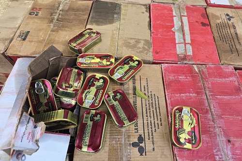 Chaque carton contenait 50 boîtes de sardines, soit un total de 33 800 unités. Selon les agents de la BMCRF, les produits présentaient des signes évidents de décomposition, dégageant une forte odeur nauséabonde, caractéristique de denrées périmées.