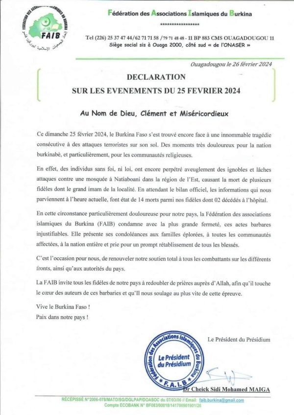 Natiaboani : 14 fidèles musulmans tués dans une mosquée