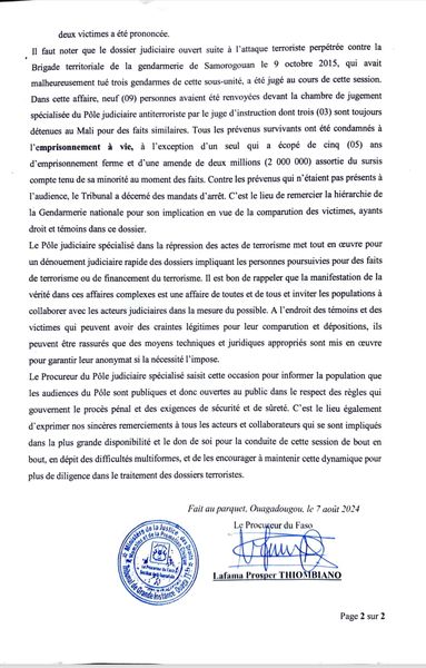 Ceci est un communiqué du Procureur du pôle judiciaire spécialisé dans la repression des actes de terrorisme .