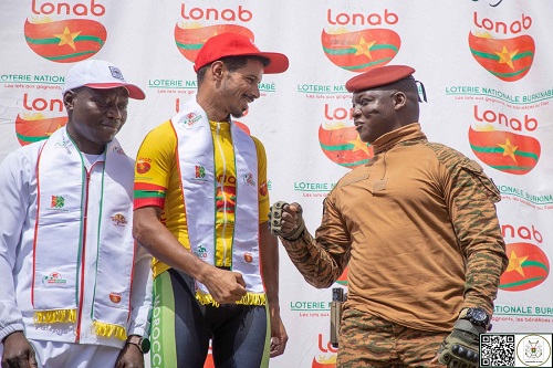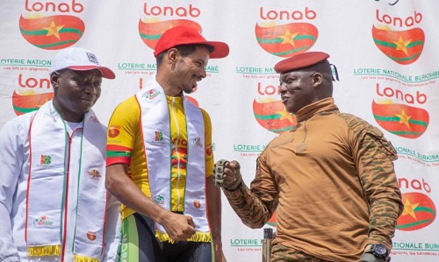 Détenteur du maillot jaune depuis la première étape (Koulbila-Tenkodogo), le marocain El KOURAJI Mohcine a su conserver la tunique la plus convoitée, faisant de lui le vainqueur du Tour du Faso 2024. Il a reçu son maillot de vainqueur et les félicitations du Président du Faso, Chef de l’Etat, le Capitaine Ibrahim TRAORE.