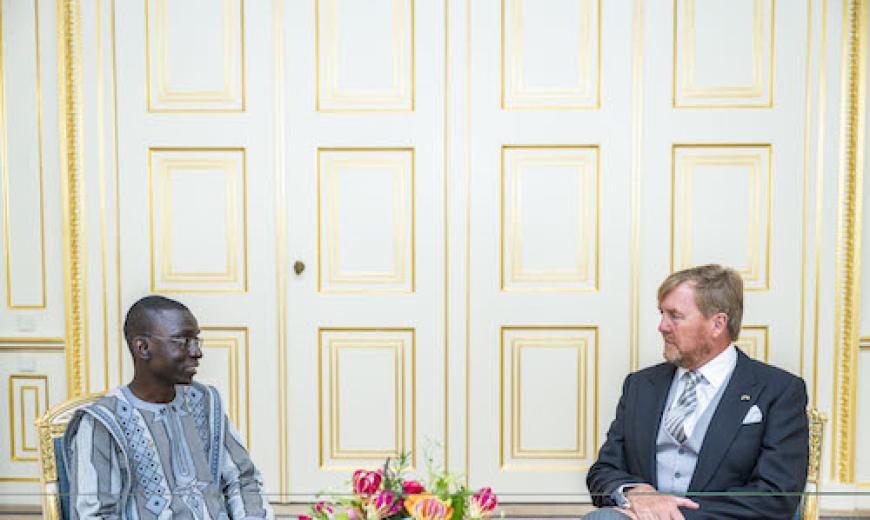 L’Ambassadeur du Burkina Faso en Belgique, Léopold Tonguenoma Bonkoungou, a présenté ses lettres de créance à Sa Majesté Willem-Alexander, roi des Pays-Bas, le mercredi 13 septembre 2023, à La Haye. La cérémonie, qui s'est déroulée dans la pure tradition du palais royal de Noordeinde, était empreinte de solennité. La cour royale a assuré le déplacement de l’Ambassadeur burkinabè depuis son hôtel au Palais. Deux carrosses royaux encadrés de la cavalerie ont été affrétés pour escorter le diplomate burkinabè et sa délégation. Au perron du palais, l’Ambassadeur a eu droit aux honneurs de la garde royale. Après l’exécution de l’hymne national burkinabè, savamment orchestré par la fanfare de la garde royale, le diplomate burkinabè a été invité à faire la revue de troupe.