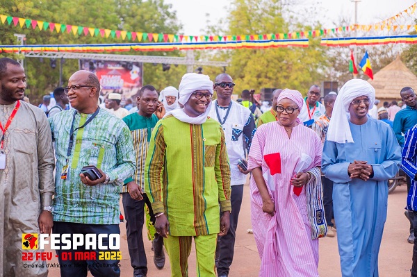 Le Ministre de la Communication, de la Culture, des Arts et du Tourisme (Pingdwendé Gilbert OUÉDRAOGO) et ses homologues en charge de la Culture du Tchad (Abakar Rozzi TEGUIL) et de la Communication du Togo (Yawa Ahofa KOUIGAN) ont procédé ce lundi 24 février 2025 à Ouagadougou, à l’inauguration du Village FESPACO du Tchad.