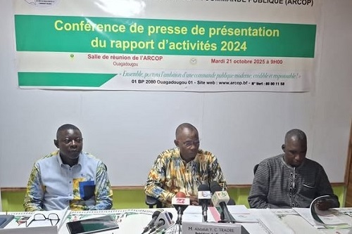 L’Autorité de régulation de la commande publique (ARCOP) a présenté, ce mardi 21 octobre 2025, les grandes lignes de son rapport d’activités 2024, au cours d’une conférence de presse à Ouagadougou. Le document, déjà transmis au Premier ministre Rimtalba Jean Emmanuel Ouédraogo le 6 octobre dernier, dresse un bilan jugé « globalement satisfaisant » par le président du Conseil de régulation, Abdallah Traoré.