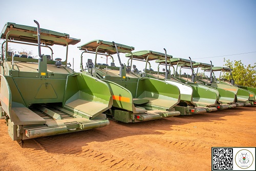 Le Capitaine Ibrahim TRAORÉ ordonne ainsi d’accélérer les travaux de bitumage des routes à travers la remise de ce nouveau lot d'équipements composé de plus de 200 engins.