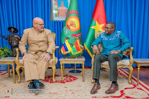 Le ministre des Affaires étrangères, de la Coopération régionale et des Burkinabè de l’Extérieur, accompagné de Madame le ministre délégué chargé de la Coopération régionale, a reçu en audience le Chargé d'Affaires de l'ambassade de la République Bolivarienne du Venezuela au Burkina Faso, ce mercredi 07 janvier.