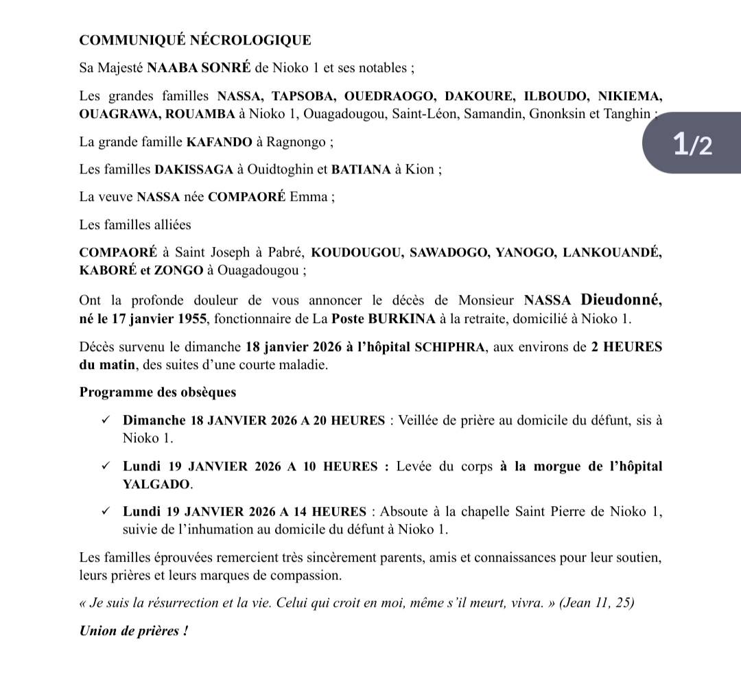 Décès de NASSA Dieudonné : Faire-part