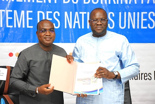Le ministre de l'Economie et des Finances, Dr Aboubakar NACANABO et le Coordonnateur par intérim du Système des Nations unies, Maurice AZONNANKPO, ont procédé ce vendredi 6 février, à la signature de l'accord entre le Burkina Faso et l'institution onusienne, pour la mise en œuvre de trois programmes transformateurs.
