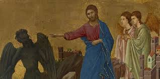 Dans cet Évangile, Jésus, après avoir jeûné quarante jours dans le désert, est tenté par le diable.