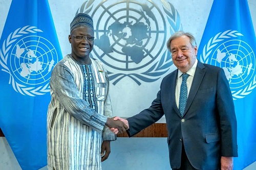Son Excellence Monsieur Saïdou ZONGO a présenté au Secrétaire général de l’Organisation des Nations Unies, les Lettres par lesquelles Son Excellence le Capitaine Ibrahim TRAORE, Président du Faso, Chef de l’Etat, l’accrédite en qualité d’Ambassadeur extraordinaire et plénipotentiaire, Représentant Permanent du Burkina Faso auprès des Nations Unies.