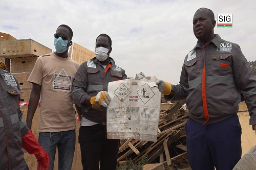 La Direction générale de l'Environnement et du cadre de vie à travers le Service de la Police de l’environnement a mené une opération de terrain le 31 mars 2026 à Ouagadougou. Cette opération a permis ainsi de mettre au jour un réseau de commercialisation de contenants ayant servi au stockage de cyanure, une substance hautement dangereuse pour la santé humaine et l’environnement.