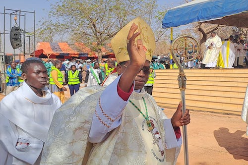 Le nouvel archevêque de Ouagadougou, Mgr Prosper Kontiebo, a célébré le dimanche 4 février 2024, le pèlerinage diocésain. A cet effet, il a lancé une colombe en guise de souhait pour un retour à la paix.